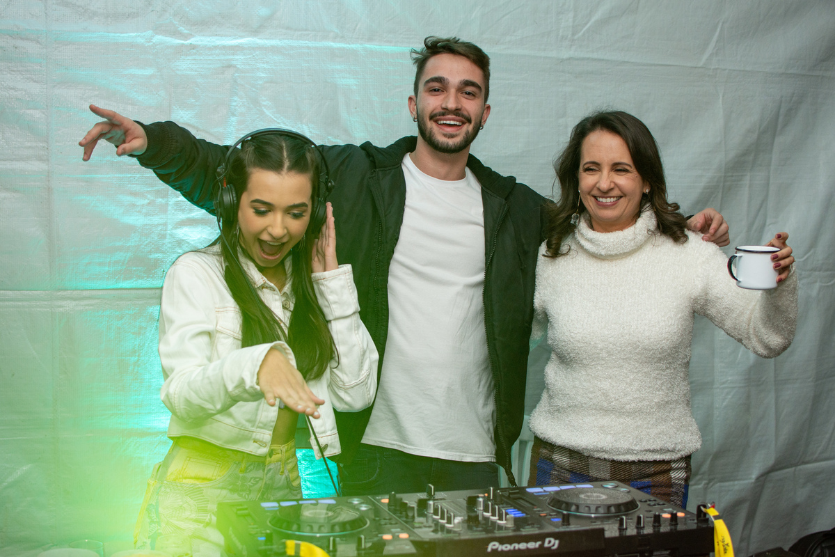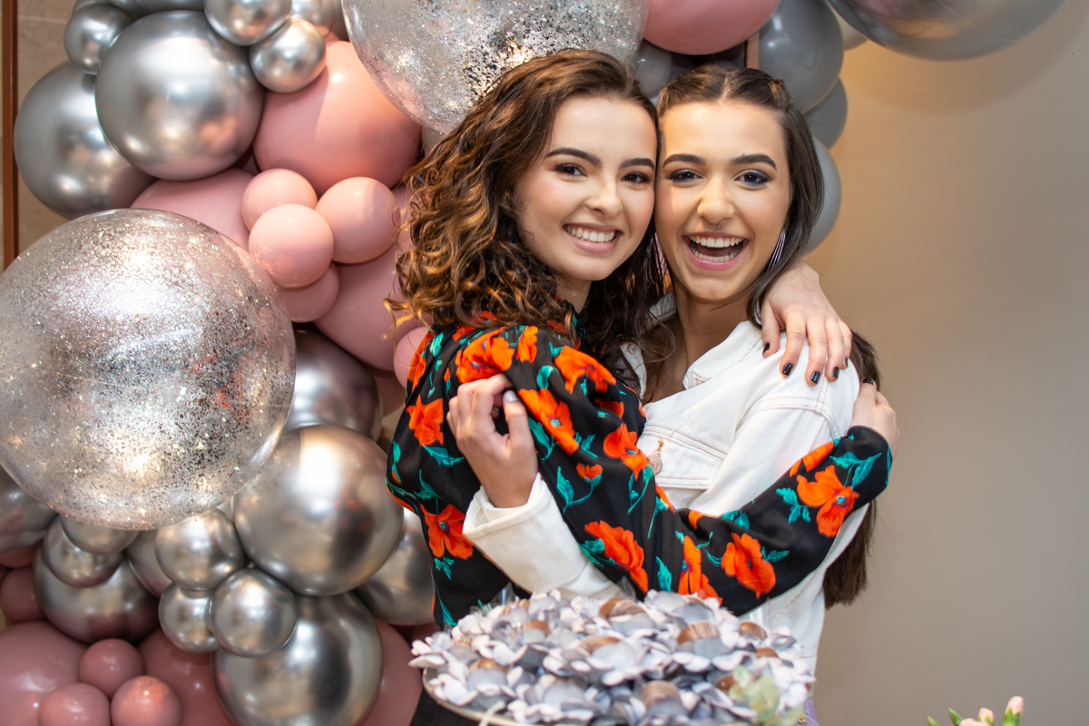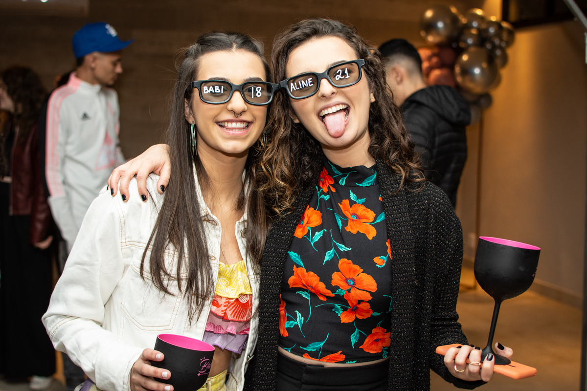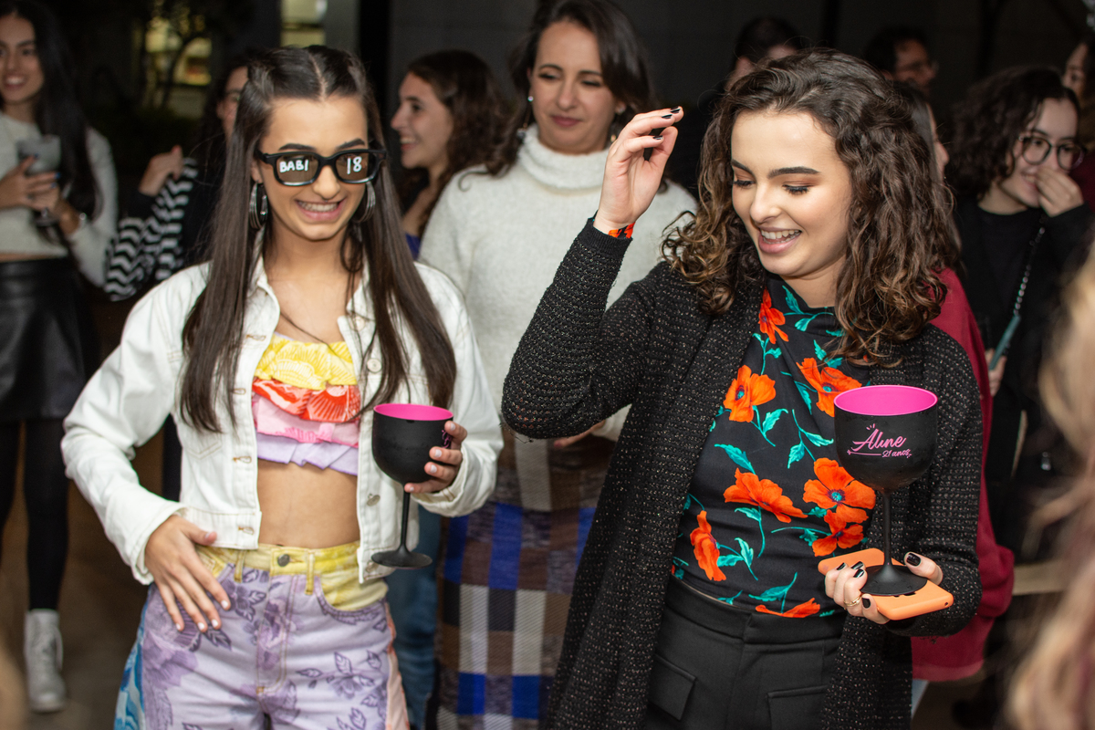 Aline e Barbara arrasaram na pista com os amigos e familiares.