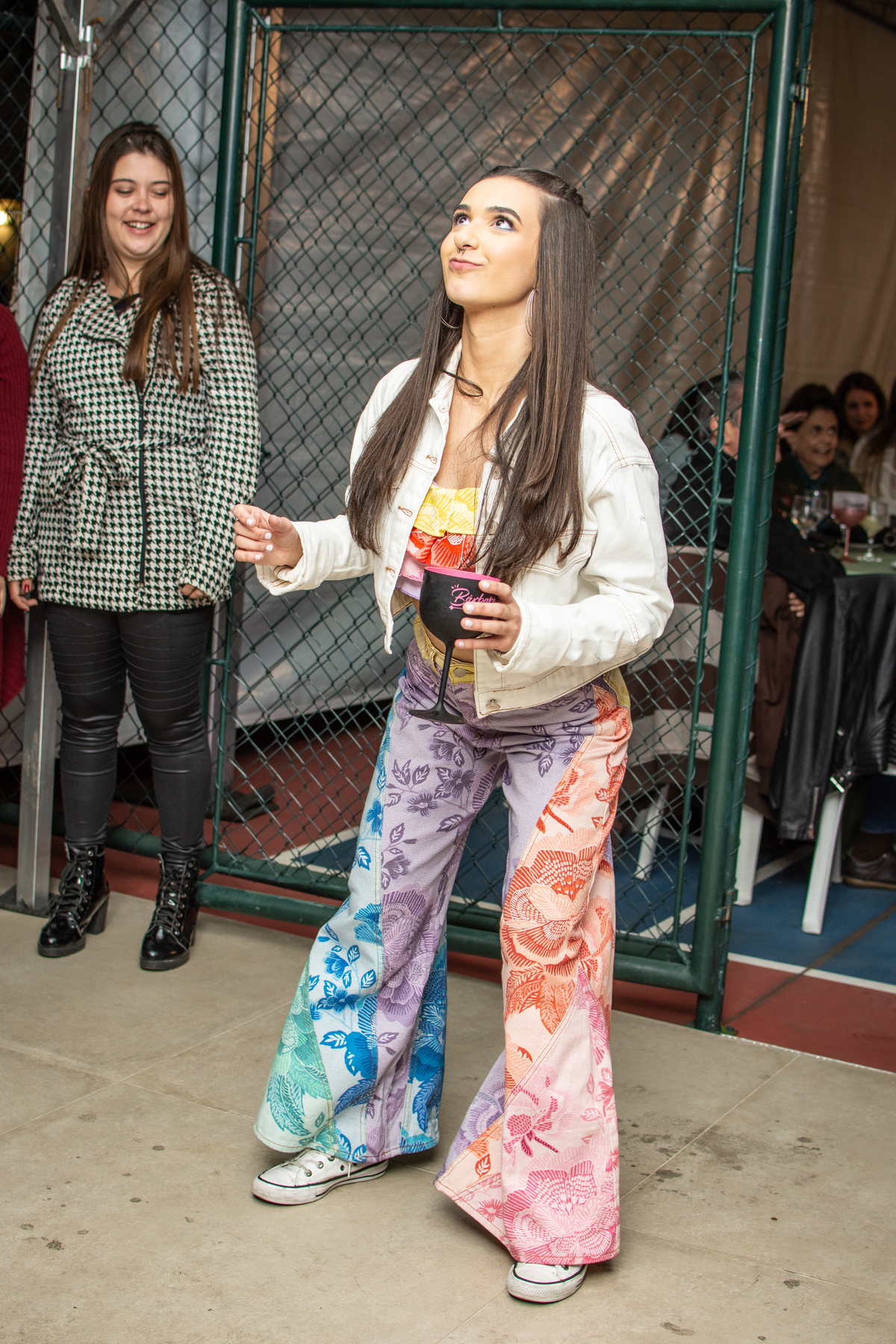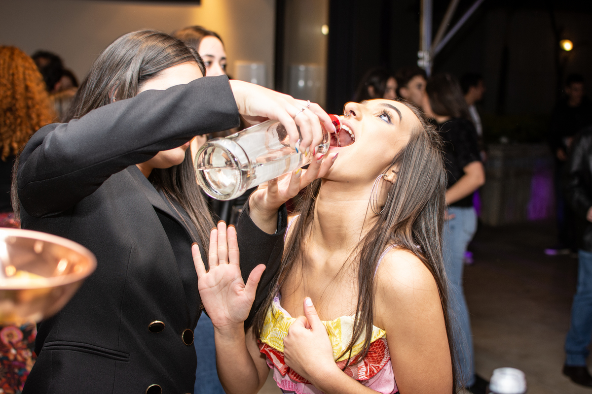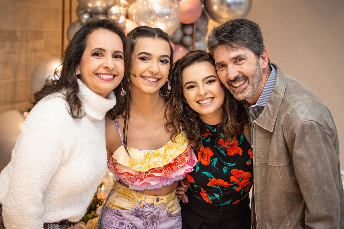 Aline e Barbara arrasaram na pista com os amigos e familiares.