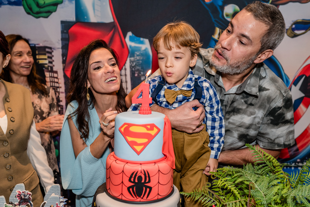 O aniversário de 4 anos do Bernardo foi um sucesso total! Ele chegou um pouco tímido, mas logo abriu um sorriso e a alegria tomou conta dele. Quando viu toda a decoração e os brinquedos preparados para comemorar o seu dia especial, pulou de alegria. É lindo ver nos olhos de uma criança a felicidade de se sentir importante e amado pela família e pelos amiguinhos.